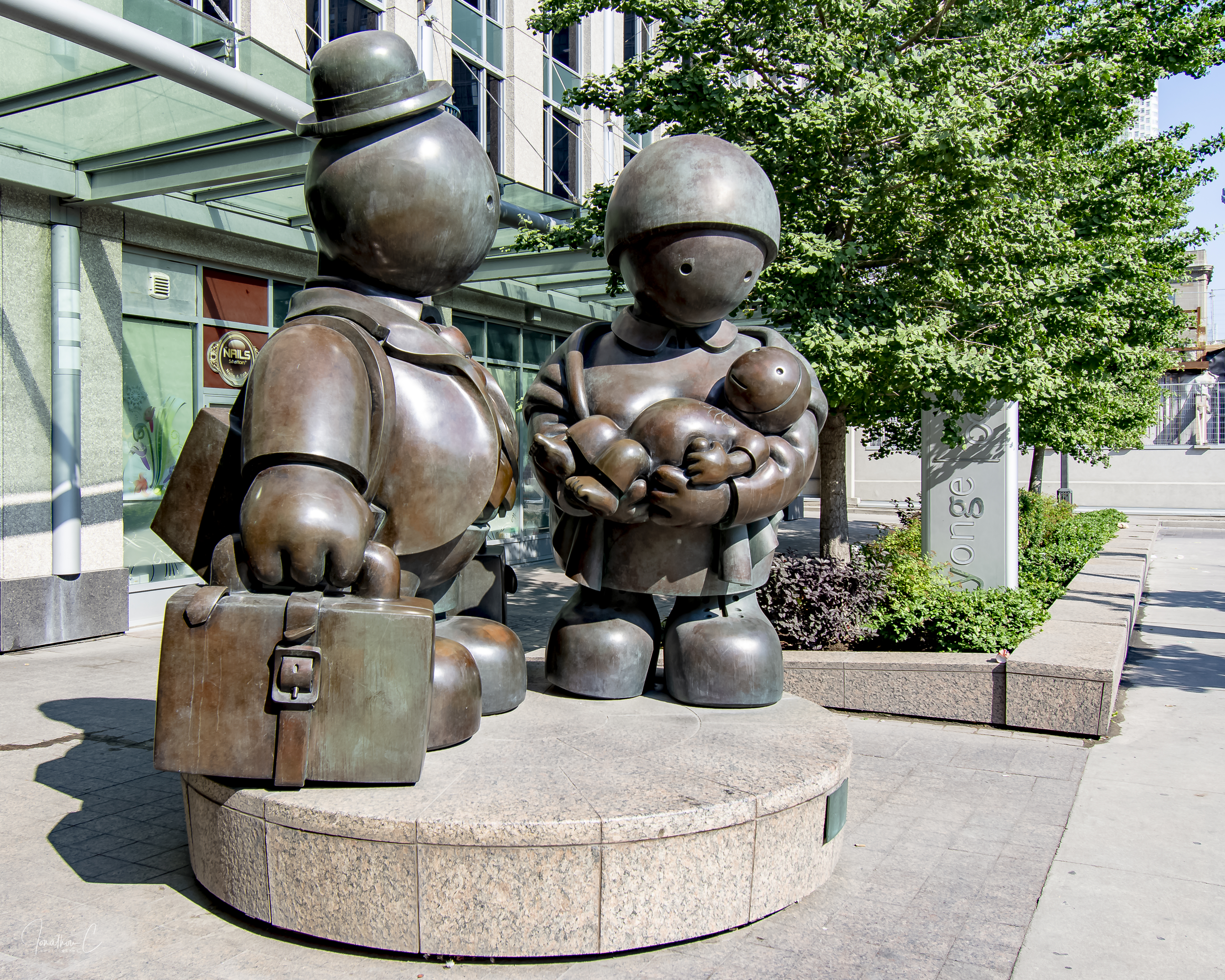 This piece was created by Artist Tom Otterness – commissioned by Lanterra Developments – to be installed outside the entrance of the condominimums located at 18 Yonge Street in Toronto.