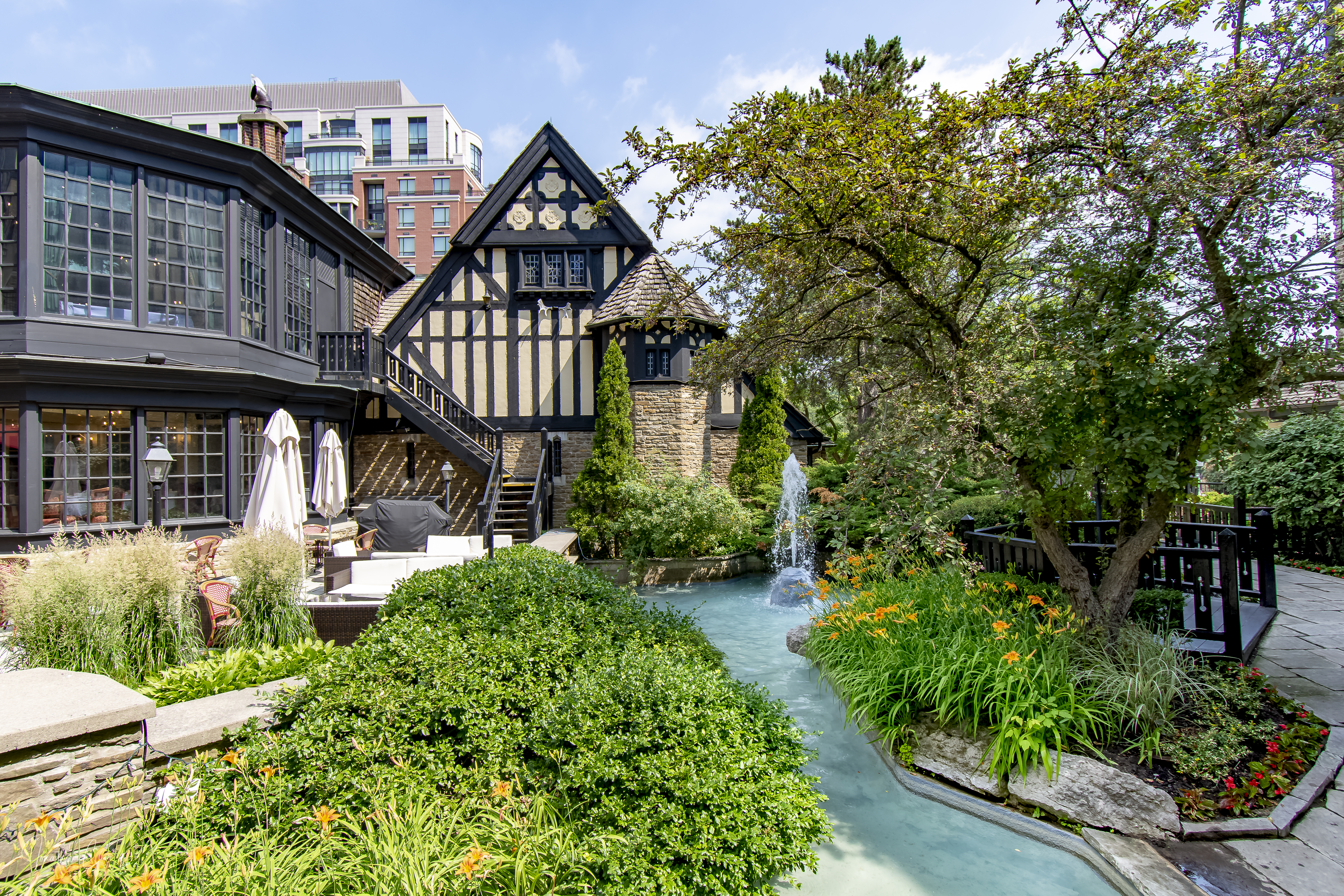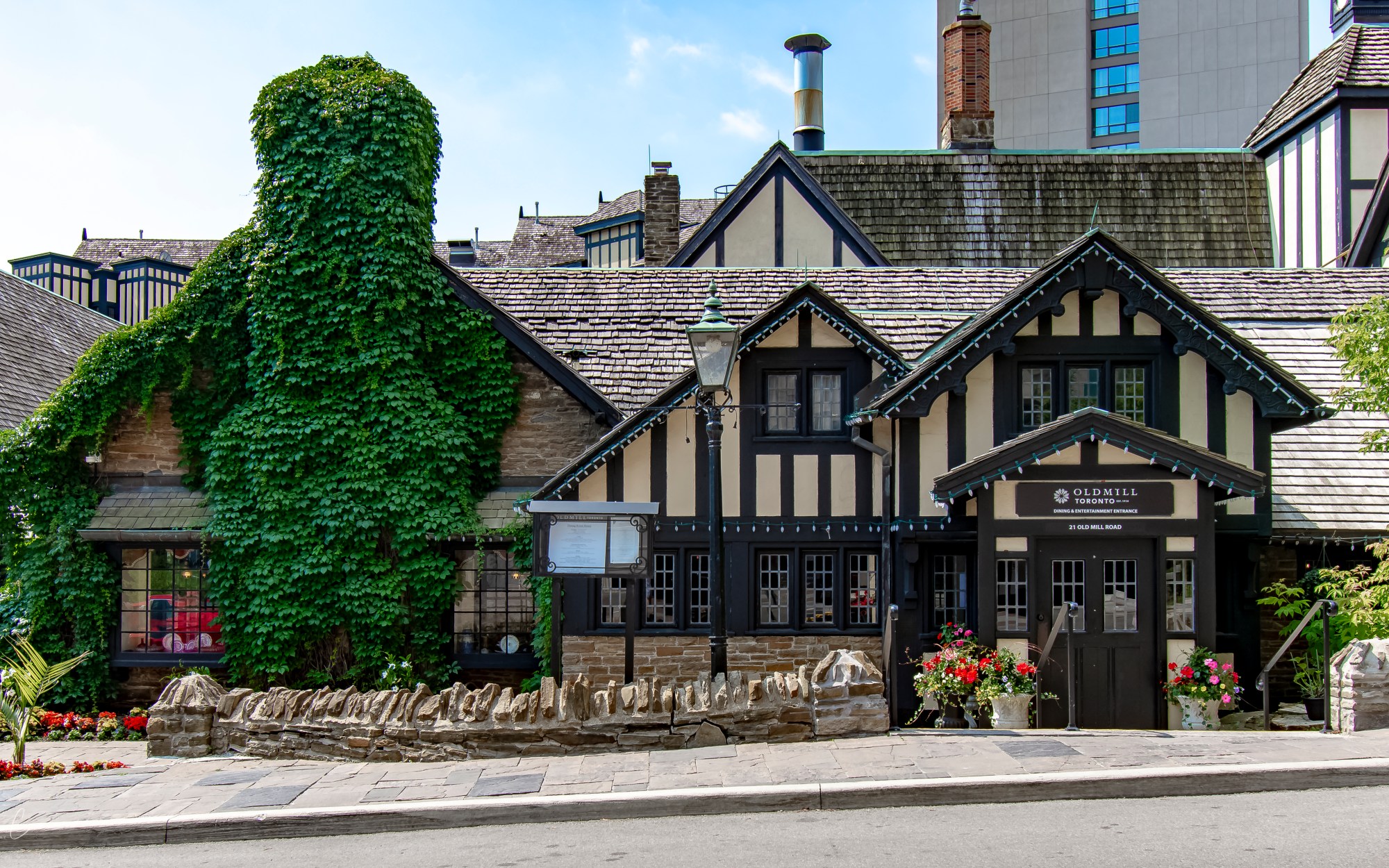 Opened in 1914 by R. Home Smith next to the ruins of an old grist mill. Originally it was a restaurant named the Old Mill Tea Garden and was part of a residential development plan for the area by Smith. The property is also close to the site on which Toronto’s first sawmill was reportedly built in the late 1700s. Interestingly, a number of different saw mills were built on the site from the late 1700s to the late 1800s, every single one of which was destroyed by fire.