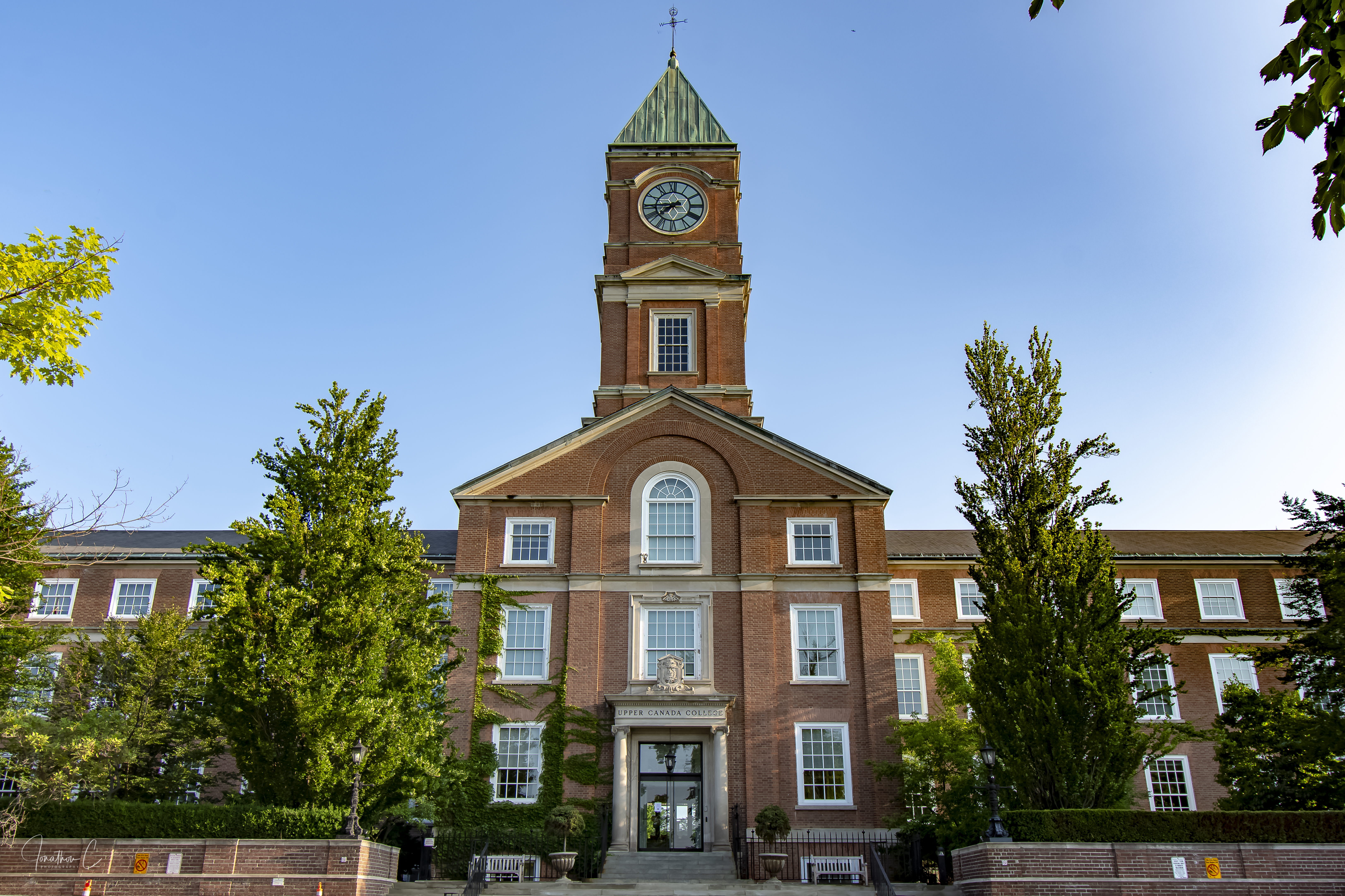 The Clock tower at Upper Canada College, which is a private school located in Toronto. UCC first opened in 1829 (at a temporary location in downtown) and has been at its currently location since the late 1800s.
